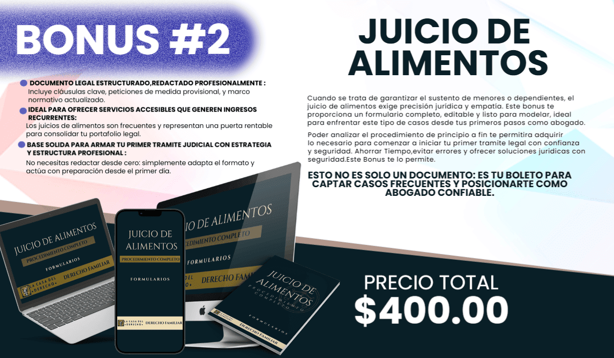 Este producto es para ti si eres abogado, pasante o recién egresado que enfrenta el reto de ofrecer soluciones legales claras, rápidas y profesionales en materia familiar… sin perder horas frente a un documento en blanco ni sentir que estás improvisando.